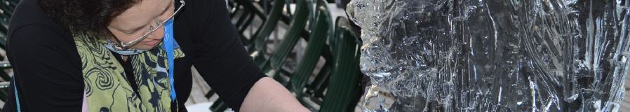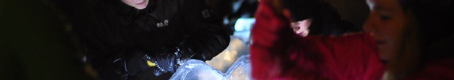Eisblöcke, Schnitzwerkzeug, Handschuhe, Leitung durch Eiskünstler